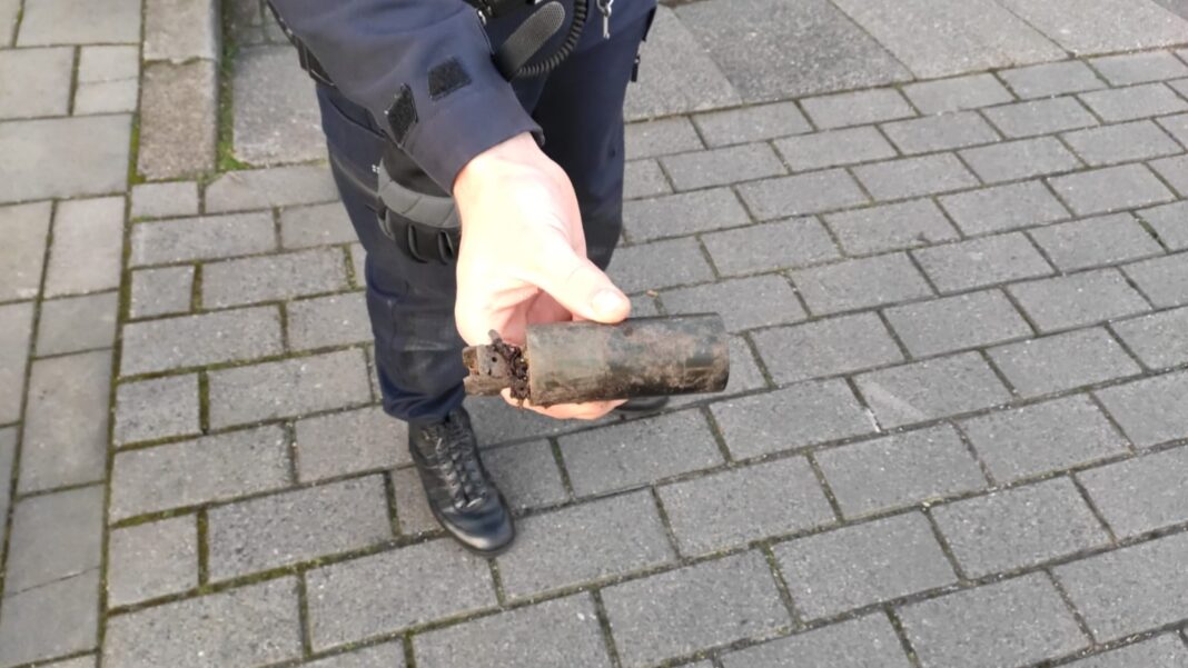 Een zogenaamde explosieven verkenner van de politie heeft het projectiel aan de hand van foto’s beoordeeld. Het zag eruit als een soort granaat maar bleek gelukkig slechts om een rookgranaat te gaan. Deze was inmiddels ook al afgegaan. Niet veel later werd de afzetting opgeheven.