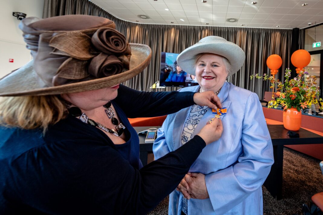 Mevrouw Netty Gombault – de Jong ontvangt haar Koninklijke Onderscheiding voor haar vrijwillige inzet vanaf 2003 voor de EHBO vereniging, afdeling Capelle. Daarnaast is ze vanaf 2006 lid en penningmeester van de Lotus vereniging de IJssel.