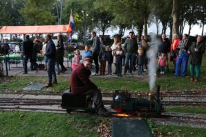 Het sein op de Stormpolder ging zaterdag 8 oktober voor een laatste keer op groen. Kleine tot grote modelstoomtreinen reden rondjes tijdens de laatste rijdag van het jaar.