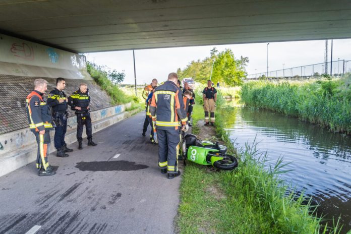 Deelscooter in water Warmoezenierspad Nieuwerkerk doet brandweer uitrukken