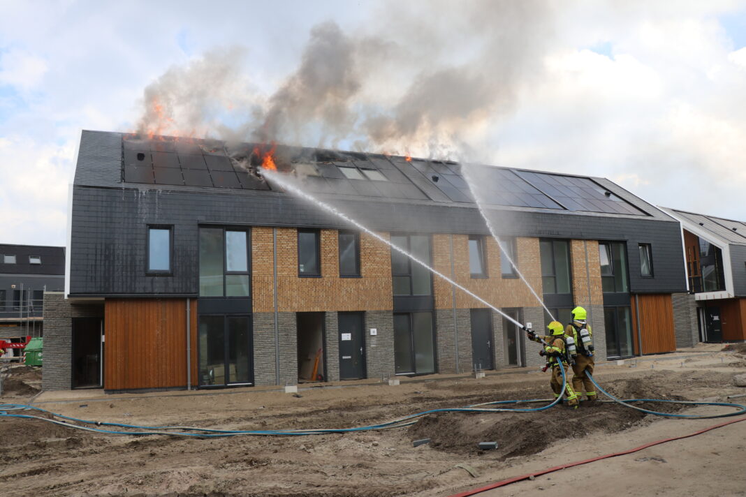 De brandweer heeft laten weten dat de brand is ontstaan in zonnepanelen op het dak van drie woningen die in aanbouw zijn. Omdat een dergelijke brand lastig te blussen is, werd opgeschaald naar het sein ‘grote brand’ voor extra eenheden. Ook worden eenheden afgewisseld in verband met de warmte.