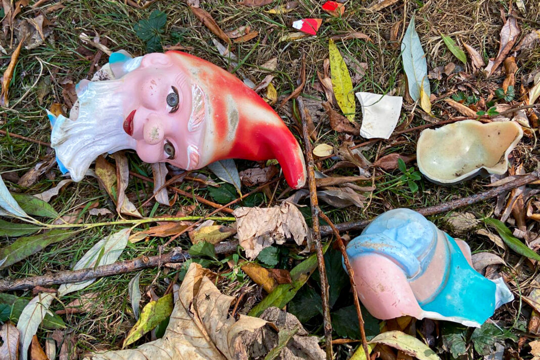 De overgebleven kabouters staan in eenzame rouw. Vele van hun soortgenoten en hun spullen zijn met flink geweld vernield. De locatie ligt bezaaid met brokstukken. Ook de ruilkast – een kastje waar buurtbewoners boekjes en speeltjes met elkaar delen – is niet gespaard gebleven.