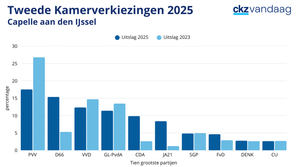 Verkiezingsuitslag 2025: PVV blijft grootste in Capelle, Krimpen en Zuidplas