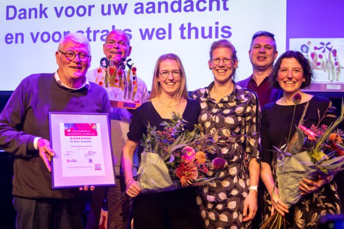 Met behulp van Ellen ten Damme werd de envelop geopend en brachten de wethouder en zij het verlossende woord. De Kleine Trompetter werd uitgeroepen tot winnaar van de Cultuurprijs Zuidplas 2025.