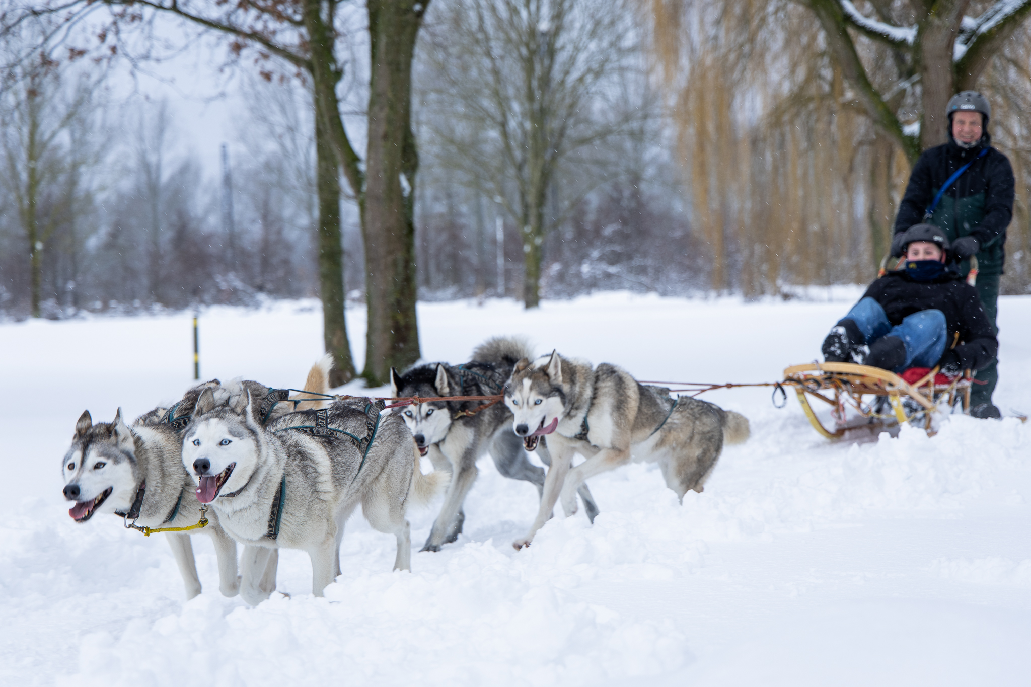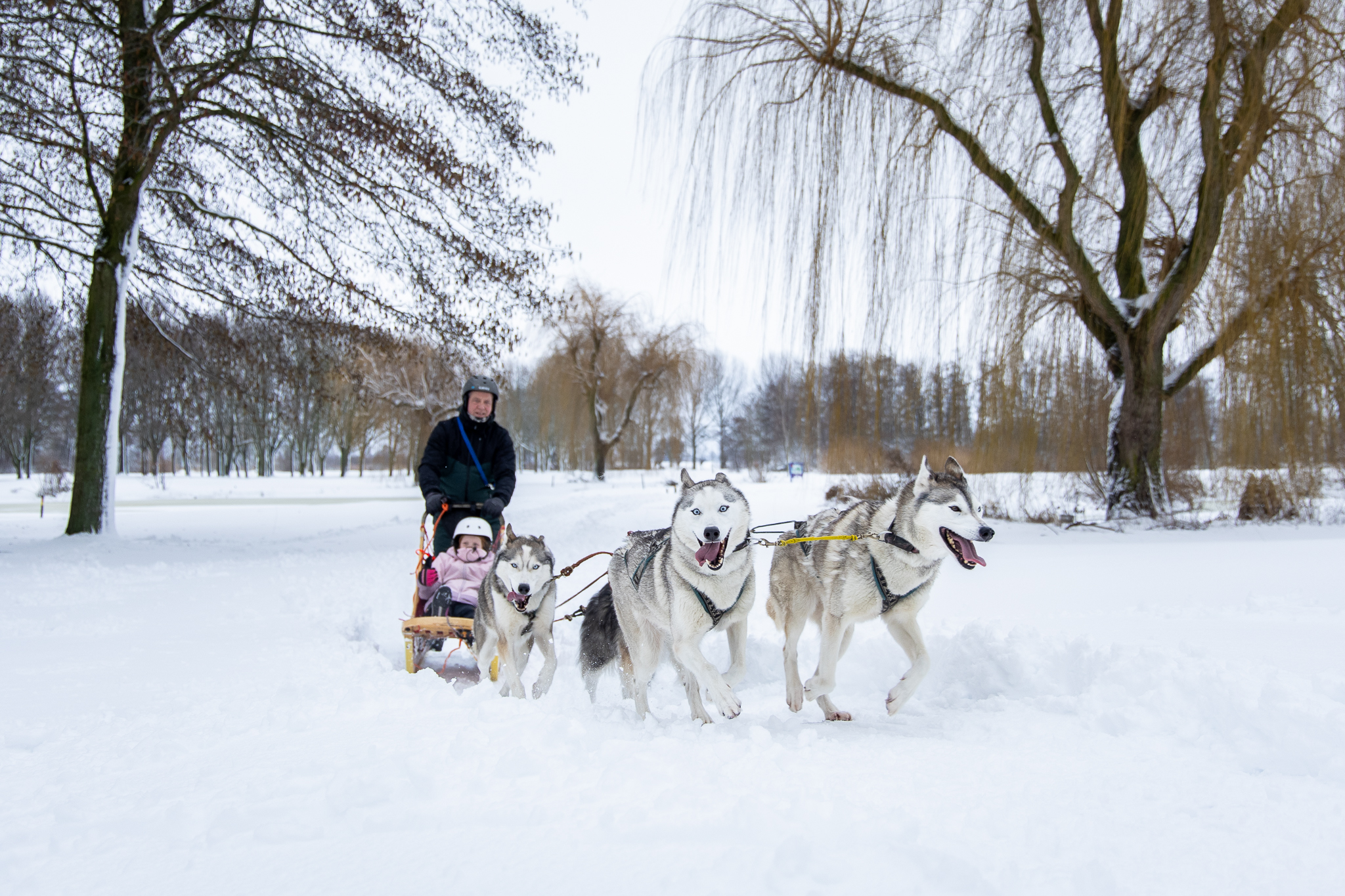 Waar de sneeuw voor de één overlast geeft, biedt het voor de ander juist mogelijkheden. Woensdagmiddag gaf dat een bijzonder beeld op de golfclub in Park Hitland. Daar konden mensen namelijk een ritje maken op een slede, voortgetrokken door husky’s.