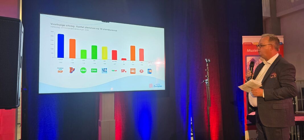 De huidige coalitie in Zuidplas bestaat uit de ChristenUnie-SGP, de VVD, D66 en het CDA. Alle vier de partijen verliezen één zetel. Lijsttrekker Patrick Molenaar van de VVD blijft er rustig onder. “Er zijn ook meer stemmers dan de vorige keer,” legt hij uit, “Dus de aardverschuiving heeft niet bij ons plaatsgevonden.”