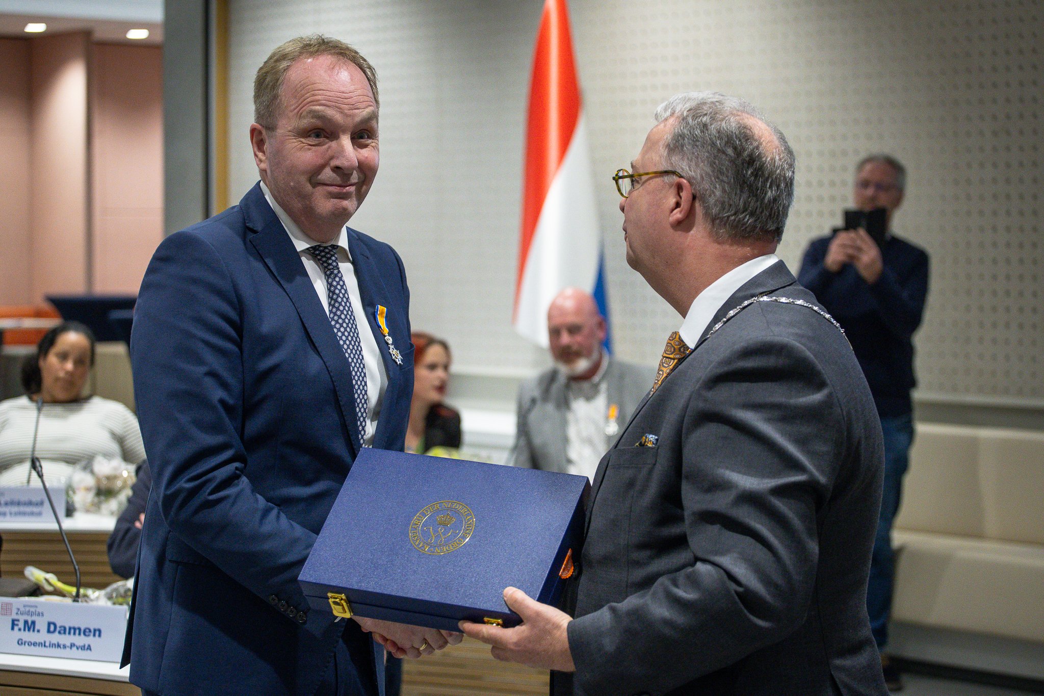 Vier vertrekkende raadsleden werden bij hun afscheid benoemd als Lid in de Orde van Oranje-Nassau vanwege hun langdurige inzet voor de samenleving als raadslid. Arwin van Buuren was van 2010 tot en met 2026 raadslid en was afgelopen acht jaar ook plaatsvervangend raadsvoorzitter. Peter Eilander was van 2014 tot en met 2026 raadslid. Bas van Loef was raadslid van 2010 tot 2022 en keerde in 2025 terug. Marita Pengel keerde in 2022 terug in de gemeenteraad na een afwezigheid van acht jaar en is drie raadsperioden actief geweest.