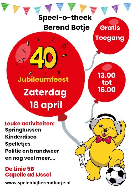 Speel-o-Theek Berend Botje is al 40 jaar een begrip in Capelle aan den IJssel. Om dit jubileum te vieren, wordt er op zaterdag 18 april groots uitgepakt. “Met dank aan alle sponsoren.”