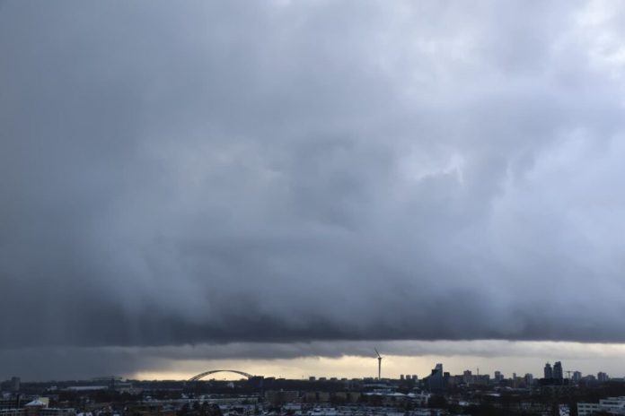 Winterse buien trekken over het land. Regen, hagel en sneeuw valt uit de lucht. Omdat het temperatuur dicht bij het vriespunt ligt, kan het wegdek verraderlijk glad worden.